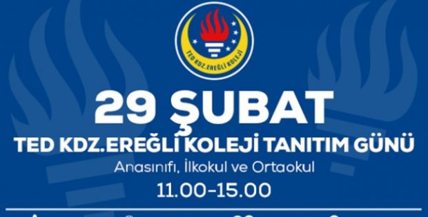 TED Karadeniz Ereğli Koleji Vakfı Özel Okulları Tanıtım Günü, 29 Şubat 2020 Cumartesi günü saat 11.00 ile 15.00 arasında gerçekleştirilecek.